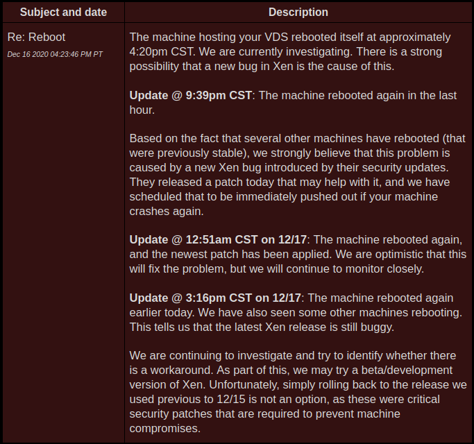 Server Downtime - Reboot