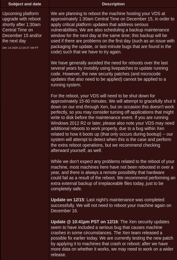 Server will be rebooted and may be offline for 5-10 minutes at 1-July-21 07:13:01 UTC. ( 3:13AM EDT )